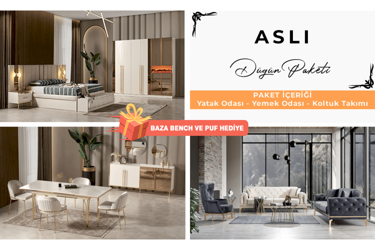 Aslı Düğün Paketi (BAZA BENCH VE PUF HEDİYE)