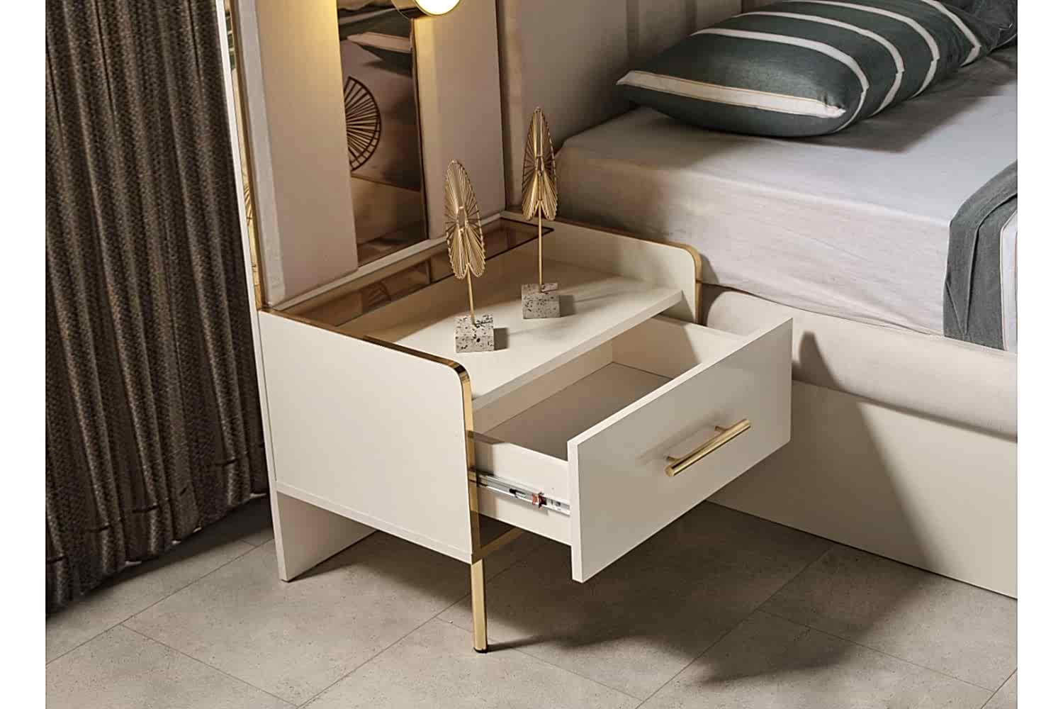 Takım İçeriği 1 Adet karyola, 1 adet gardırop, 2 adet komidin, ve 1 adet şifonyerden oluşmaktadır. Baza hediyedir.