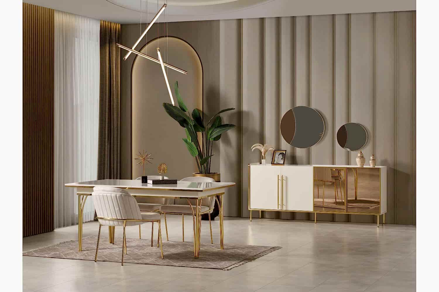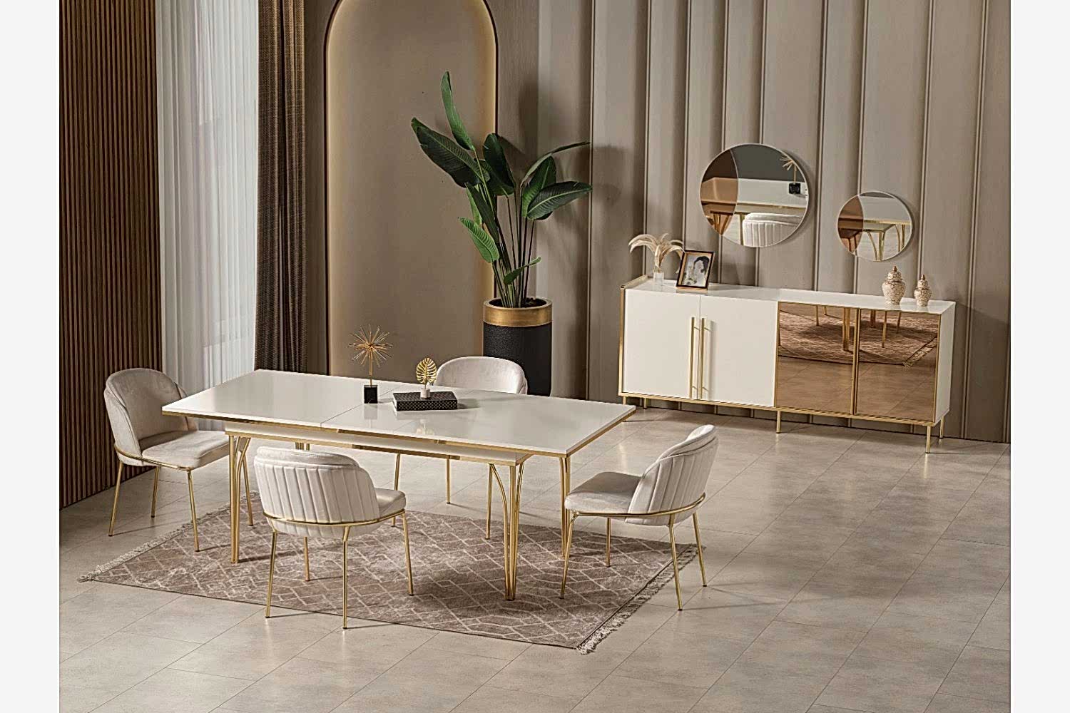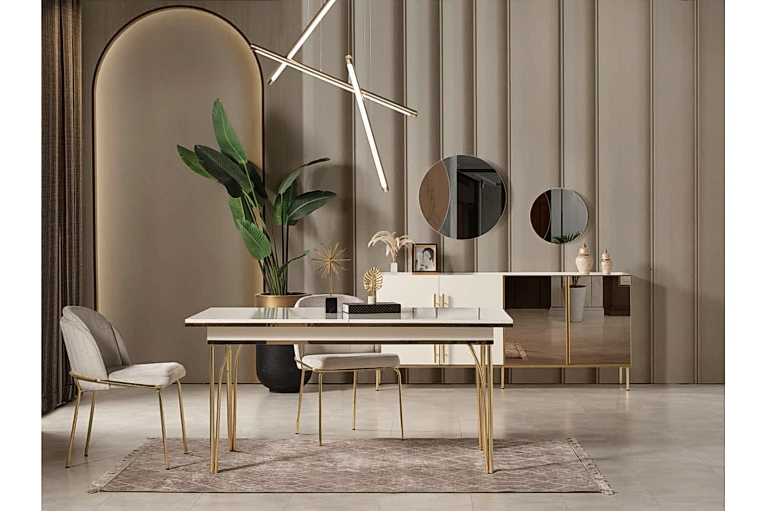 Takım İçeriği 1 adet masa + 4 adet sandalye + 1 adet Konsoldan oluşmaktadır. İsteğe bağlı Tv Ünitesi eklenebilmektedir. İsterseniz, Konsolu iptal edebilir yerine TV ünitesini seçebilirsiniz.