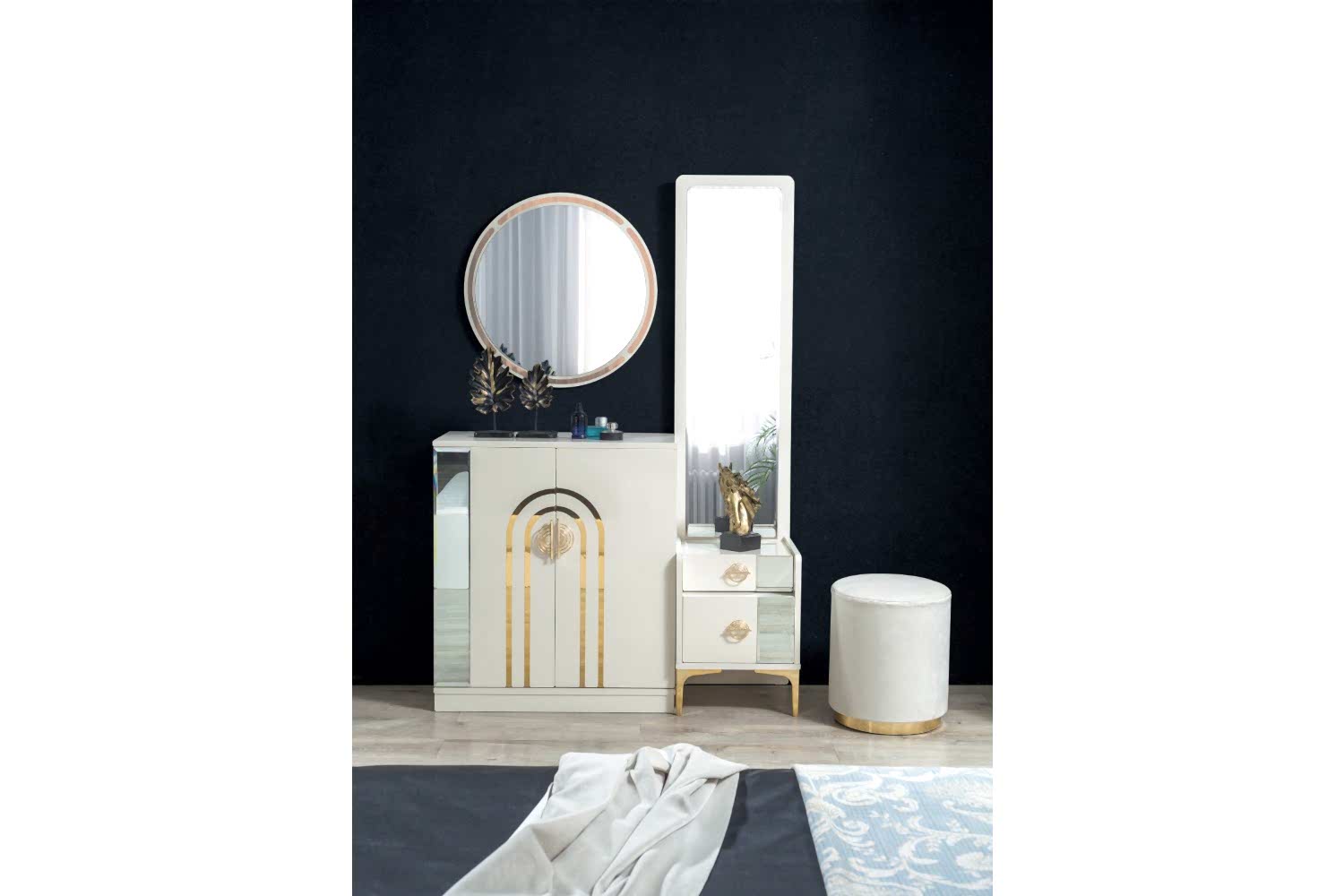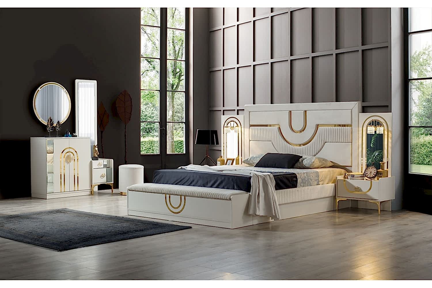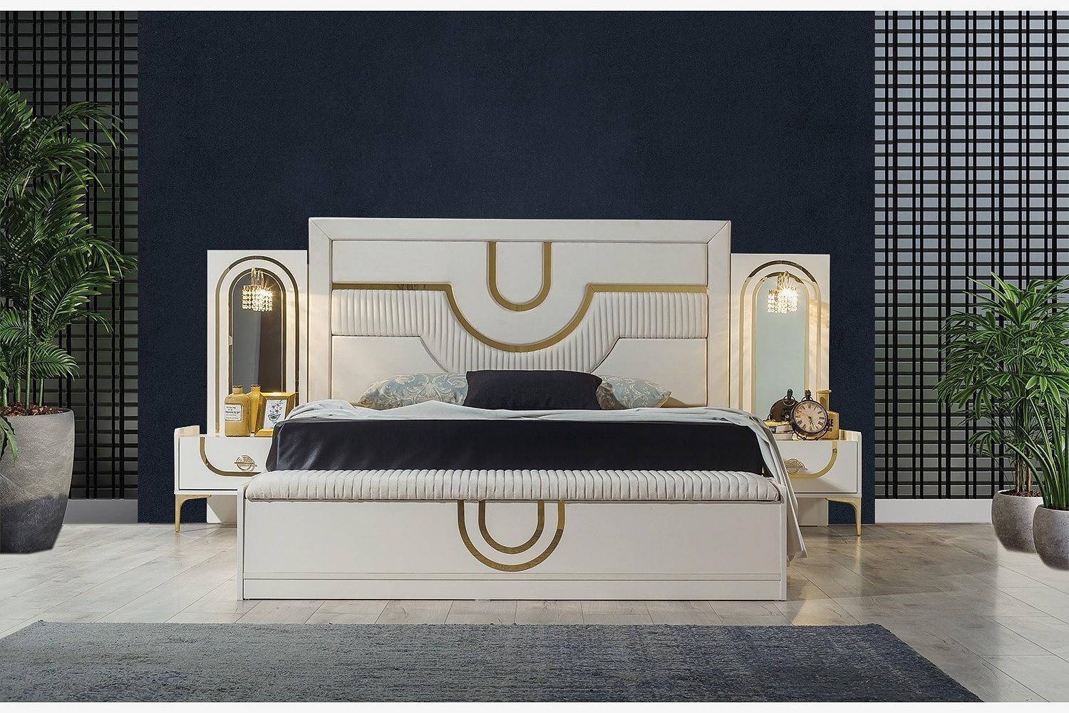 Takım İçeriği 1 Adet karyola, 1 adet gardırop, 2 adet komidin, ve 1 adet şifonyerden oluşmaktadır. Baza hediyedir.