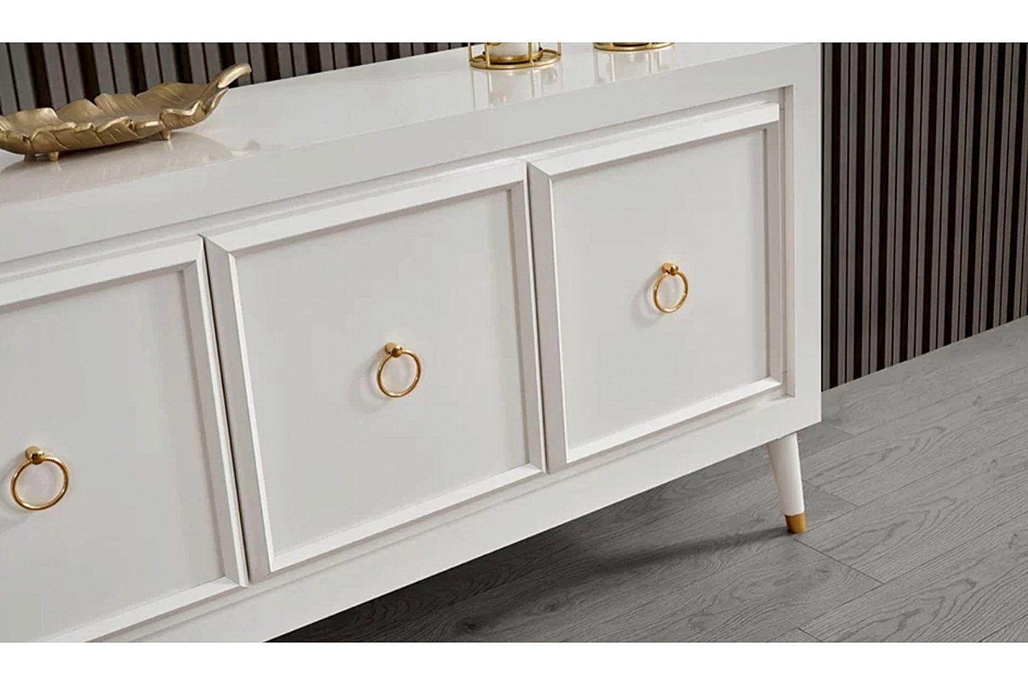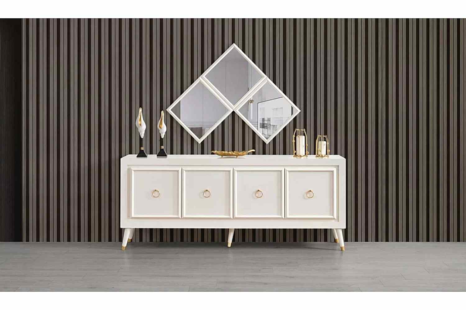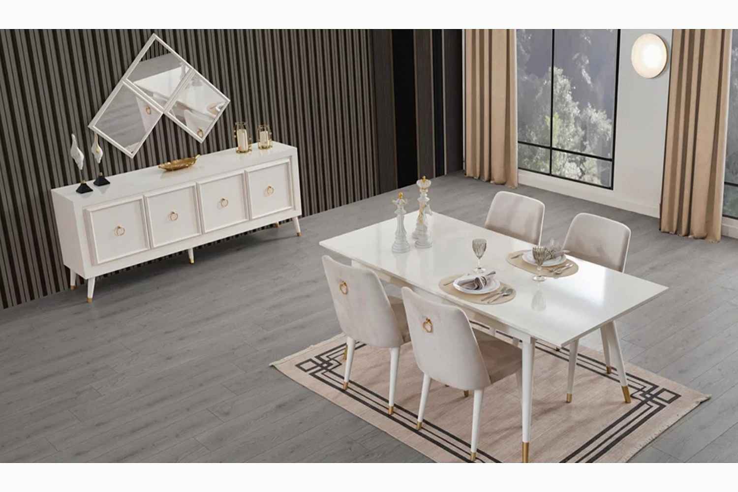 Takım İçeriği 1 adet masa + 4 adet sandalye + 1 adet Konsoldan oluşmaktadır. İsteğe bağlı Tv Ünitesi eklenebilmektedir. İsterseniz, Konsolu iptal edebilir yerine TV ünitesini seçebilirsiniz.